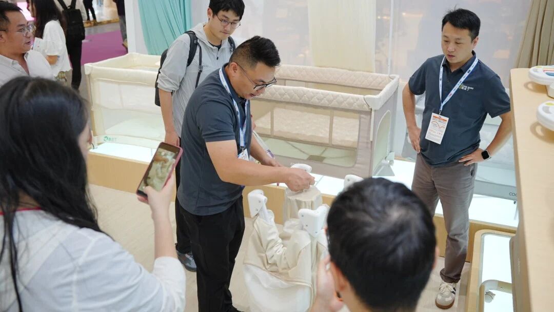 一鍵開合嬰兒床,吸引眾多參展者駐足